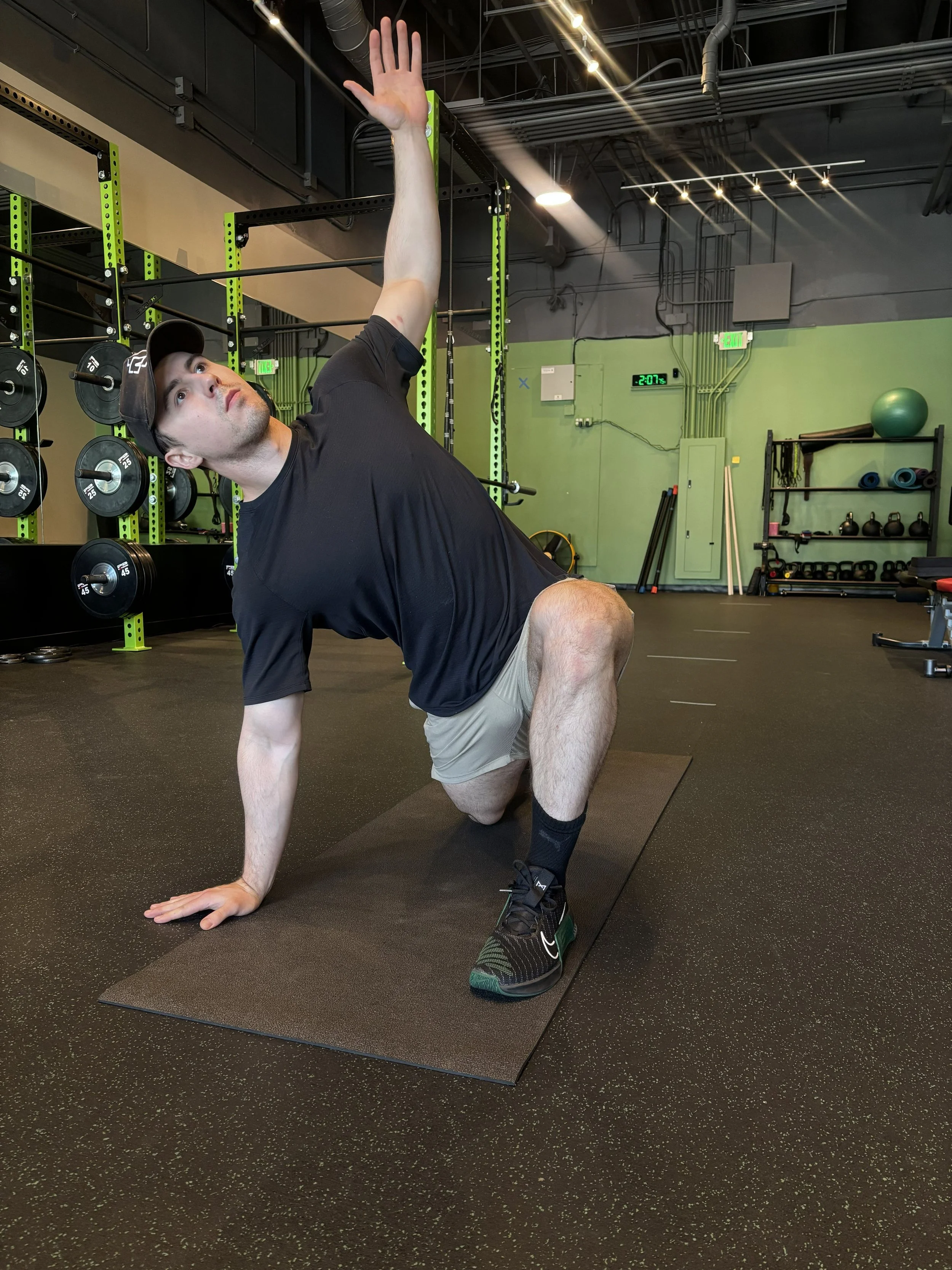 The Runner’s stretch is a great stretch for the hip flexors. Hip flexors are a lead cause of pain in the back and are a great spot to target.